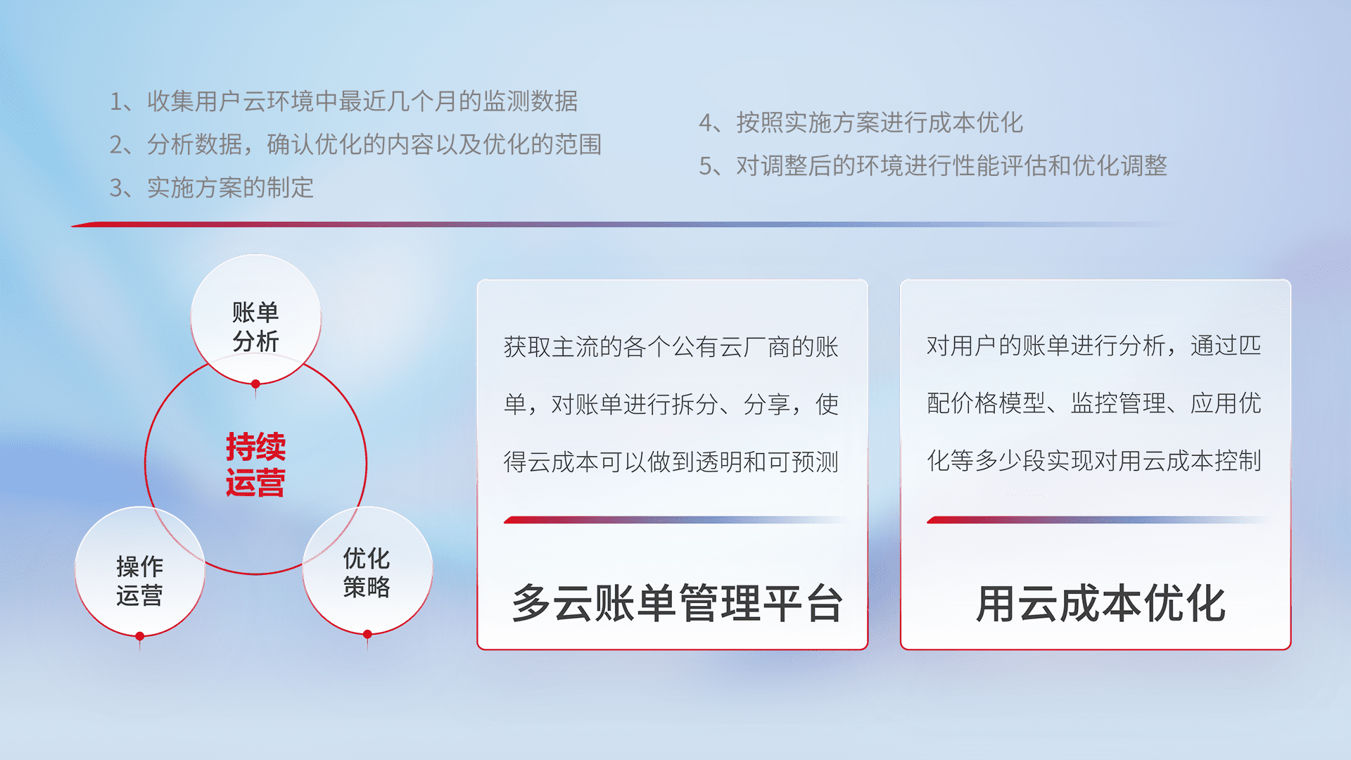监控业务系统资源开销,,,对资源的消耗精确计量,,,,实现费用的透明化管理,,不断提升资源使用率,,调整资源购买方式,,,,降低资源费用成本,,,用云成本可预测、、、用云费用可优化,,云资源配额有据可依。。